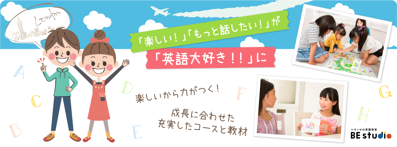 「使える英語力・表現力・自ら学ぶ力」が身につく英語教室です。ベビーから中学生まで、成長に合わせた充実したコースと教材。 子どもの意欲を引き出す、カリキュラムや教材で、楽しく自然に英語力が身につきます。授業でついた力を試せる検定試験「GTEC Junior」や、実践の場としてイベントも豊富に行っています。 立志スクールは、株式会社ベネッセビースタジオと提携してベネッセの英語教室 BE studioを運営しております。